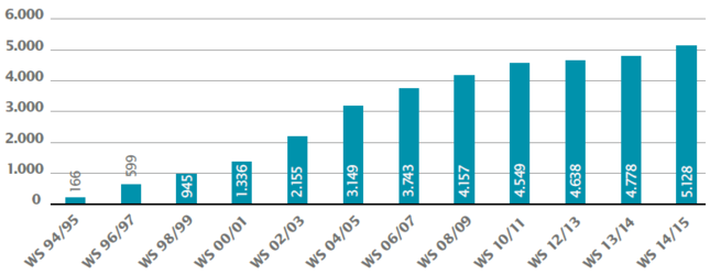 - Quelle: FH Oberösterreich; Zahlen exkl. Studienbefähigungslehrgang