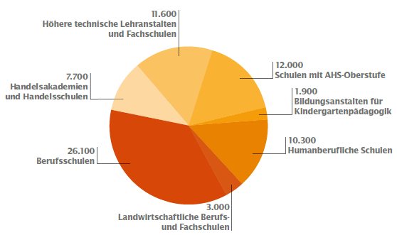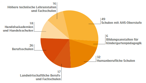 Berufsschulen, mittlere und höhere Schulen gibt es in Oberösterreich an 164 Standorten. Sie werden von ca. 73.000 Schüler/innen besucht.