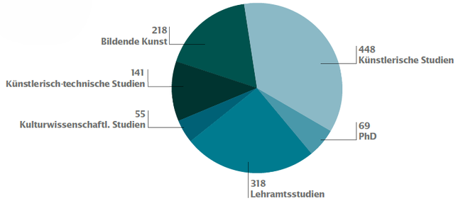 Der Großteil davon sind künstlerische Studien – hierzu zählen die Diplomstudien im Bereich der bildenden Kunst ebenso wie Bachelor- oder Masterprogramme in Fachrichtungen wie Grafik-Design und Fotografie, textil·kunst·design oder Zeitbasierte und interaktive Medien.