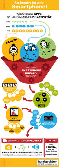 Bei dem raschen technischen Fortschritt ist es gar nicht so einfach, den Überblick zu behalten und die kreativen Möglichkeiten auszuschöpfen. Wie kreativ das Smartphone sein kann, zeigt die Übersichtsgrafik von Handysektor.de mit vielen interessanten Apps.