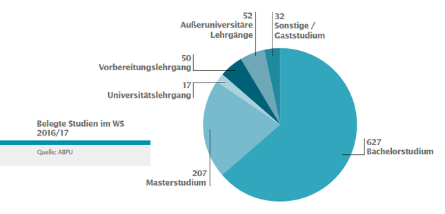 Im Studienjahr 2016/17 waren rund 870 Studierende aus allen Teilen der Welt an der ABPU inskribiert – sie werden an der ABPU von etwa 220 international renommierten Lehrenden unterrichtet und können in ihrer Ausbildung von der gelebten Zusammenarbeit der Kunstsparten Musik, Schauspiel und Tanz in der Lehre und der Projektarbeit profitieren: