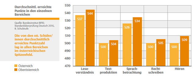 Im Frühjahr 2016 nahmen rund 73.000 Schüler/innen der 8. Schulstufe (davon knapp 13.000 aus OÖ) an der Überprüfung der Bildungsstandards im Fach Deutsch teil.