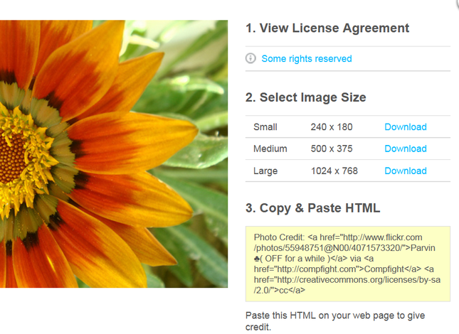 Sind Sie nun auf der Suche nach Bildern für Präsentationen oder Arbeitsmaterialien, können Sie sich auf spezielle Bildersuchmaschinen begeben, die eine eigene Suchfunktion für Creative Commons anbietet. Eine solche ist beispielsweise www.compfight.com. Auf dieser Seite wird die Datenbank von Flickr durchsucht – gleichzeitig kann man aber einstellen, dass nur Bilder unter CC-Lizenz angezeigt werden sollen. Bei der Vorschau des Bildes sieht man dann auf einen Blick, welche Rechtemodule von Creative Commons für das Bild gelten: