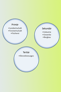 - Primärer Sektor: Landwirtschaft, Forstwirtschaft, Fischerei, Bergbau