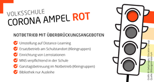 Wir haben als besonderes Service für Sie speziell für die Volksschule Infografiken erstellt, die auf einen Blick die jeweiligen Maßnahmen für die einzelnen Farben für die Volksschule übersichtlich darstellen.