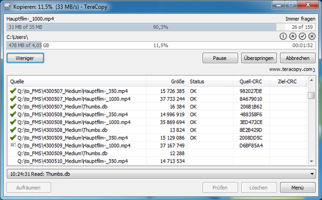 - TeraCopy bei der Arbeit