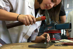 Die PowerGirls der IBMS Wels, der BRG Wallererstraße und der NMS Franziskanerinnen Wels durften am 10. März im BRP Powertrain unter anderem ihren Namen aus Drähten löten. Detailansicht