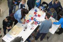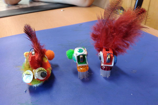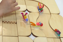 Auf vorbereiteten Holzplatten, die als Rennstrecken ausgelegt waren, flitzte Franz umher. Die Kinder ließen ihre Phantasie spielen und mit den vorbereiteten Deko-Elementen sah Franz bei jedem Kind anders aus. Es war toll zu beobachten, mit wie viel Begeisterung und Spaß die kleinen Roboter zum Leben erweckt wurden.