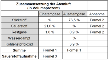 Formel 2: Einatemgas minus Ausatemgas