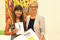 Frauen-Landesrätin Mag.a Doris Hummer überreichte den Preis am 17. Juli in ihrem Büro im Landhaus Linz. Die glückliche Gewinnerin ist Nadine Limberger (13 Jahre) aus Feldkirchen (Bezirk Urfahr-Umgebung).