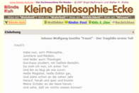 "Es klingt mächtig groß, das Thema: 'Philosophie', so groß, dass selbst Erwachsene nicht so ganz wissen, was das eigentlich sein soll. Das hat auch seine Gründe wie wir sehen werden..." - Viele wissenswerte Informationen zum Thema "Philosophieren" bietet die Plattform "Blinde Kuh".