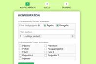 Mit dem Konjugationstrainer von schoLINGUA kann die Konjugation von über 10 000 deutschen Verben trainiert werden. Der Konjugationstrainer bietet mehrere Übungsmodi, darunter auch ein Memory. Es ist möglich, sich die Aussprache aller Verbformen anzuhören.