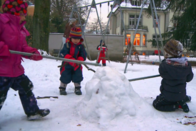 Beim gemeinsamen Durchbohren des Schneehaufens bieten sich den Kindern viele Lerngelegenheiten. Am Anfang steht die Idee, im Schneeberg zu stochern. Daraus folgt der Plan, ein Loch hindurchzubohren. Die Kinder finden heraus, wie sie Rechen und Stöcke am besten einsetzen, um ein Loch zu bohren (Nevin: „Wir müssen ganz fest drücken.“), entdecken das Prinzip der Hebelwirkung und erfahren etwas über die Konsistenz von Schnee. D.h. sie lernen und fördern: