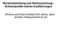 Psychologe und Pädagoge Hartmut Kasten behandelt in seiner Powerpoint das Thema Moralentwicklung und Werterziehung mit Schwerpunkten "Frühe Kindheit", Entwicklungspsychologische Grundlagen und pädagogische Folgerungen, Abhängigkeiten zw. sozialer und kognitiver Entwicklung, Die Aufgabe der Eltern...