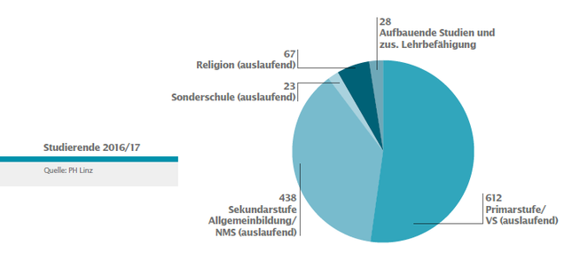 Aktuell sind knapp 1.200 Studierende (fast 1.000 davon weiblich) an der PH Linz inskribiert. Mehr als die Hälfte von ihnen absolviert ein Lehramtsstudium für Primarstufe (bzw. das auslaufende Lehramtsstudium für Volksschulen):