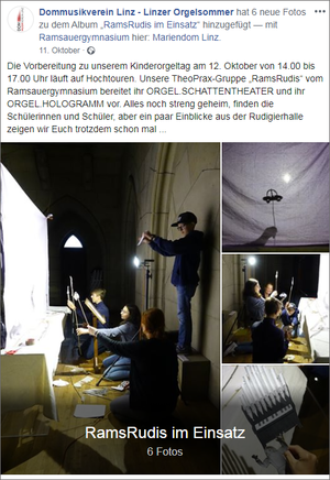 Kurz vor dem Kinderorgeltag im Oktober 2019 fanden sich auf der Facebook-Seite des Dommusikverein Linz erste Einblicke der Vorbereitungen der "RamsRudis" für diese Veranstaltung.