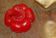 Aus einem Paprika wird eine Form für einen Wandhaken zum Ausgießen mit Epoxyharz abgenommen.