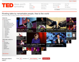 Über das Suchfeld lassen sich Vorträge nach bestimmten Schlagwörtern finden. Gibt man beispielsweise „education“ ein, finden sich aktuell 361 Video-Vorträge die mit diesem Thema in Verbindung stehen. (Stand 2.12.2012)