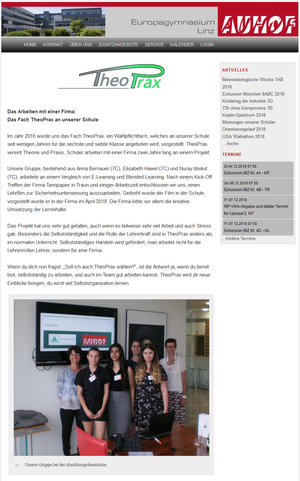 Im Jahr 2016 wurde uns das Fach TheoPrax, ein Wahlpflichtfach, welches an unserer Schule seit wenigen Jahren für die sechste und siebte Klasse angeboten wird, vorgestellt. TheoPrax vereint Theorie und Praxis, Schüler arbeiten mit einer Firma zwei Jahre lang an einem Projekt.