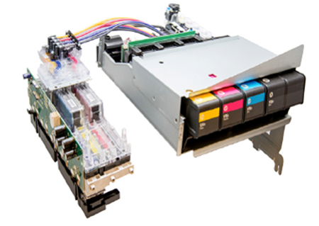 - Der riesige Druckkopf eines HP-Printers. Schön zu sehen die großen Tintentanks.