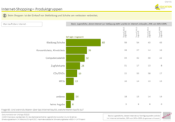 Jugendliche kaufen vor allem Kleidung und Schuhe über das Internet ein (60 %). Immer häufiger werden aber auch Konzert- oder Kinotickets (36 %) erworben, gefolgt von Computerzubehör (32 %) und Zugfahrtkarten (24 %). CDs/DVDs oder MP3s werden nicht so häufig übers Internet bestellt. Nur 19 % bzw. 13 % der Jugendlichen, die online einkaufen, beziehen diese übers Internet.