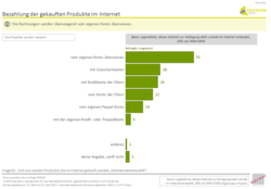 Bezahlt wird nach Angaben der Jugendlichen meistens mittels Überweisung vom eigenen Konto (55 %). Aber auch Gutscheinkarten (28 %), die Kreditkarte der Eltern (26 %) und das Konto der Eltern (22 %) kommen zum Einsatz. 14 % geben an, auch über Paypal zu bezahlen, und 4 % mit der eigenen Kreditkarte.
